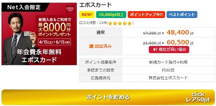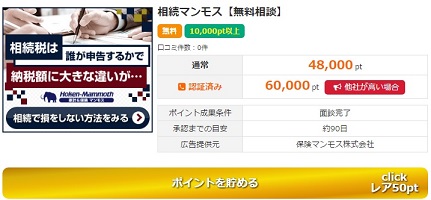 試しに100,000pt以上をクリックしてください。すると下のバナーが表示されると思いますので、「ポイントを貯める」ではなく、「詳細・口コミ」をクリックします。