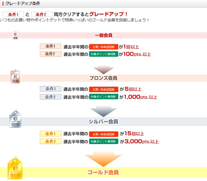 一般会員からブロンズ会員には過去半年間のお買い物認証回数1回以上