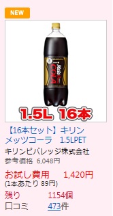 72本購入が条件ですが、1本あたり19円は破格ですよ。