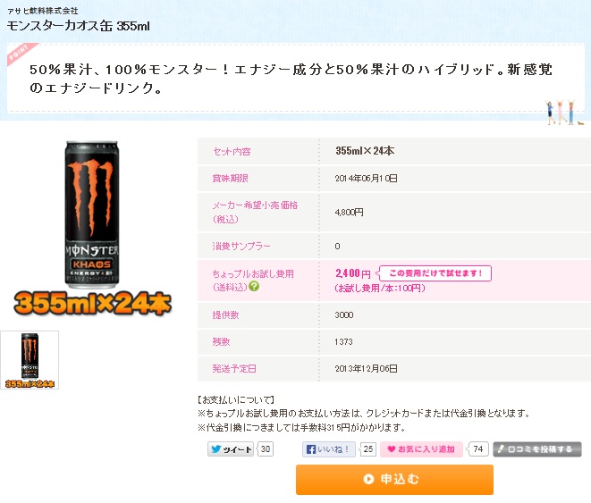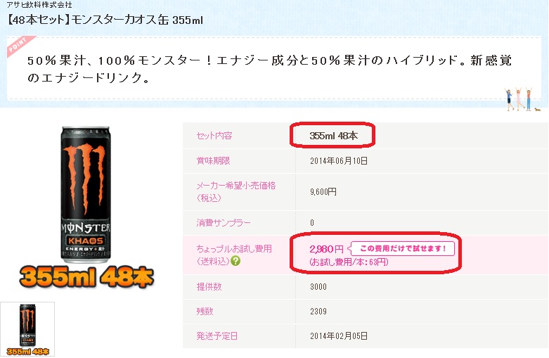 エナジードリンク「モンスターカオス」が1本当り64円で購入出来るぞ!!