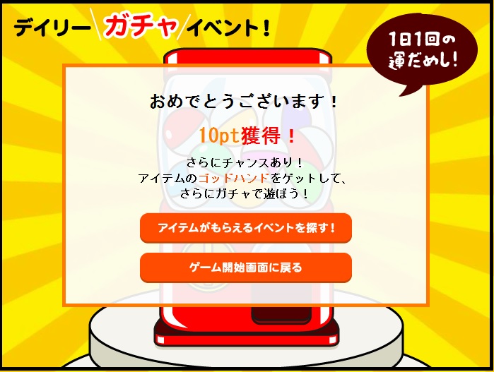 1日1回無料で参加できるガチャガチャで獲得出来るポイントは