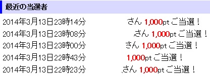 早速、高額当選者が発表されています。と言っても1,000pt(100円)ですが、