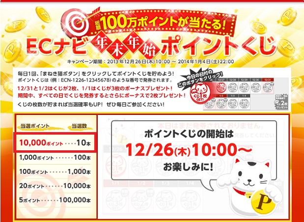 当選ポイントも年末年始ということで、太っ腹です。