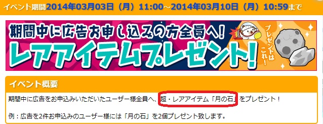 3月3日〜10日まで広告に申し込むと、レアアイテム