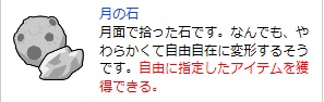 「月の石」ってなんだという方に:自由に好きなアイテムに交換できるアイテムです。