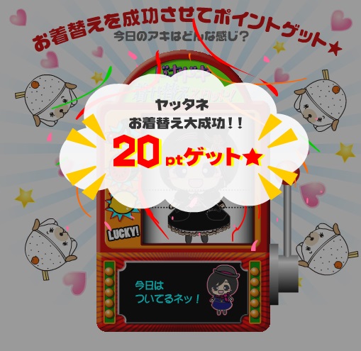 「アキのドキドキ着せ替えスロット」で20ptGETしちゃいました。