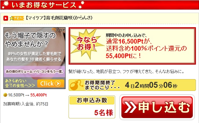 GetMoney! メール限定 アキの時限爆弾 女性用育毛剤が実質0円