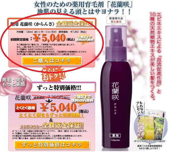 今日届いた、メール限定商品は【育毛剤花蘭咲】という女性用育