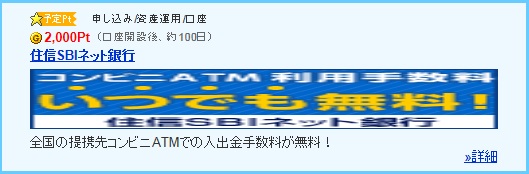 他のポイントサイトでは住信SBIネット銀行口座開設で獲得出来るお小遣いは300円程度が