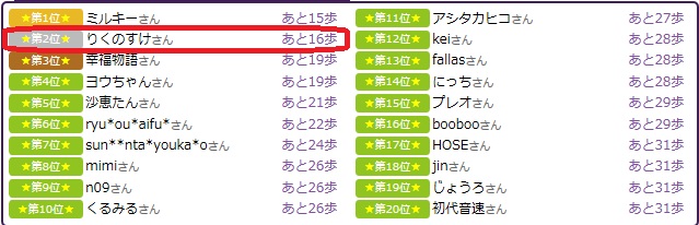 そして、そして順位はと言うと2位です。1位との差は僅か1歩。