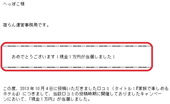ホテル・旅館の口コミサイト「宿らん」で1万円当選!!キタァ━━━((゚□゚;))━━━ !!