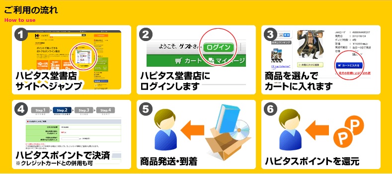 ・ハピタス堂書店へをクリック(下の画像の赤丸です。)