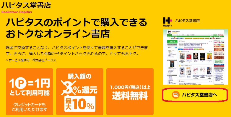 ※「ハピタス堂書店」は株式会社ブークスが提供しているサービスで