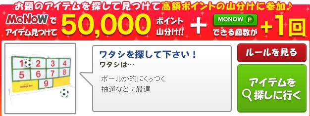 50,000ポイント山分け、画像商品を見つけてクリックで山分けに参加しよう。