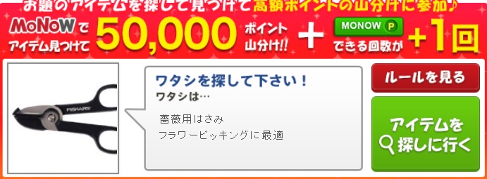 50,000ポイント山分け、画像商品を見つけてクリックで山分けに参加しよう。