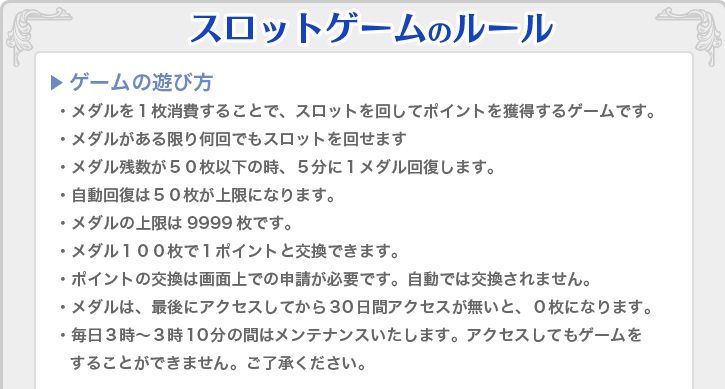 注目ポイントはメダル100枚で1ポイント(0.5円)と交換出来ると言うこと。