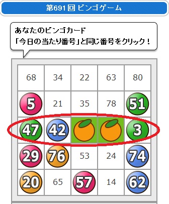 『フルーツメール』のビンゴゲームは他と違い、ビンゴ達成のスピードを競うものでは