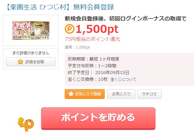 「ポイントを貯める」をクリックすることで、「楽園生活 ひつじ村」登録