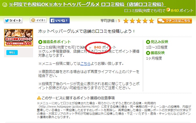 「ホットペッパー」口コミ投稿。ポイントUPで再登場!!しかし条件が・・・。」