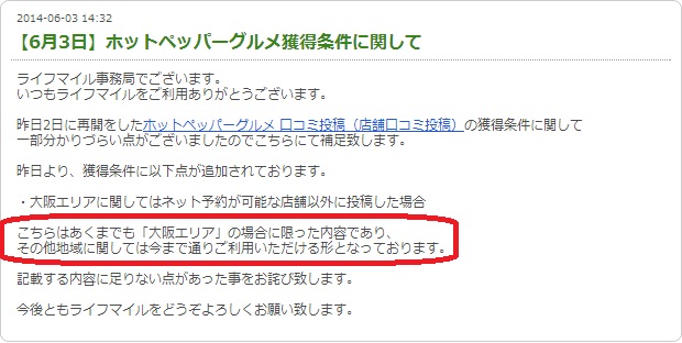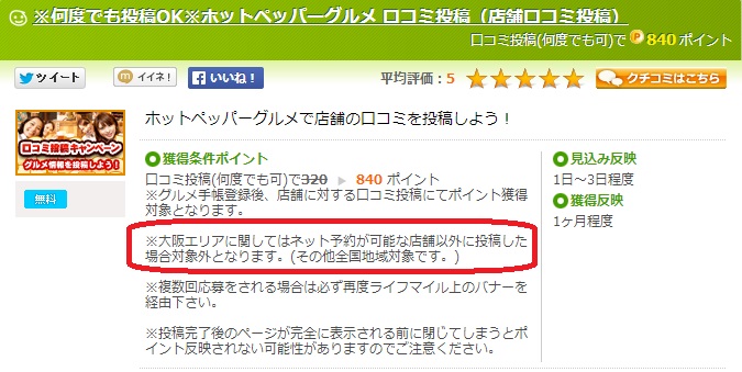 しかし、大阪のネット予約できる店舗に口コミを投稿する場合も『ライフマイル』経由が