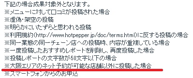 ※大阪エリアに関してはネット予約が可能な店舗以外に投稿した場合対象外となります。