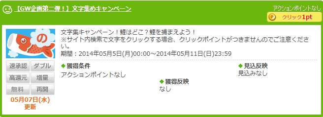 参加方法は、ライフマイル内のクリックポイント枠に隠れている文字をクリックして